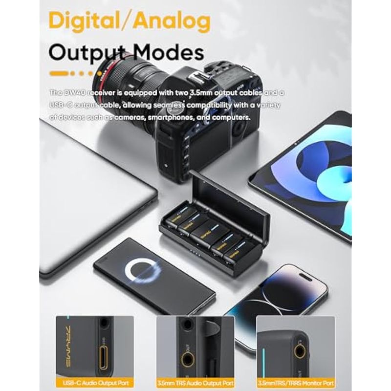 AUDIOMICROFONOSiRay DW40 Micrófono Lavalier inalámbrico de cuatro canales con funda de carga, cancelación de ruido,