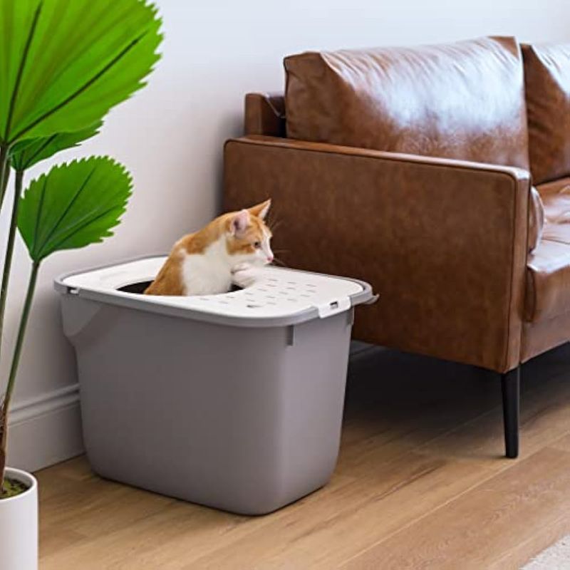 MASCOTASGATOSEstética e Higiene GatosIRIS USA - Caja de arena cuadrada para gatos, bandeja grande para gatos con tapa de captura de