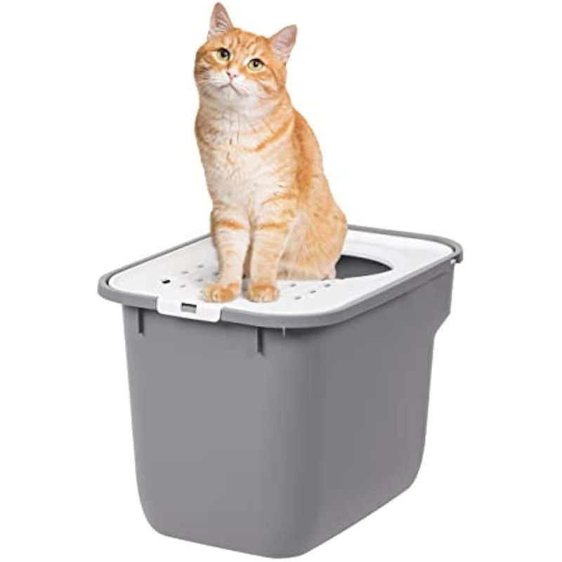 IRIS USA - Caja de arena cuadrada para gatos, bandeja grande para gatos con tapa de captura de
