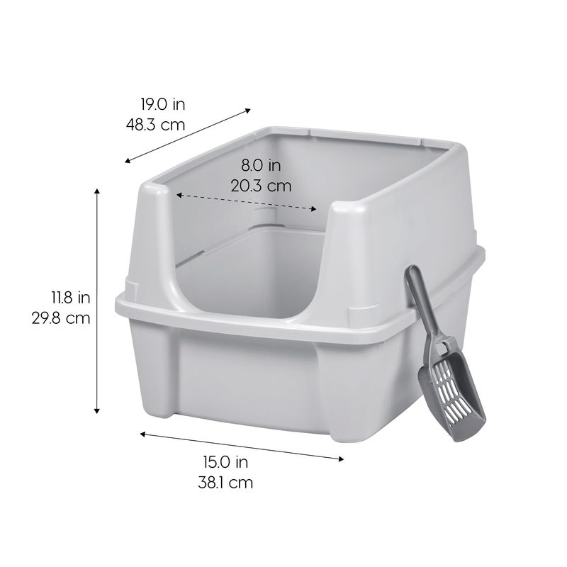 IRIS USA - Caja de arena para gatos con escudo y cuchara, gris oscuro