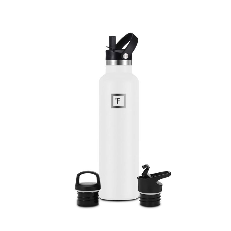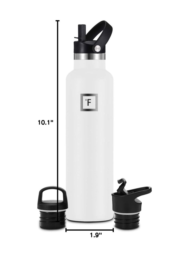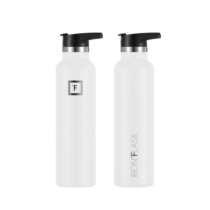 Botella de agua aislada para deportes: ¡Adiós a la condensación! El aislamiento de doble pared hace que la botella de Iron Flask no sude. Mantiene tu bebida fría hasta por 24 horas y caliente hasta por 12 horas. *Nota: Solo las botellas de 12, 16, 20 y 24 onzas caben en los portavasos.