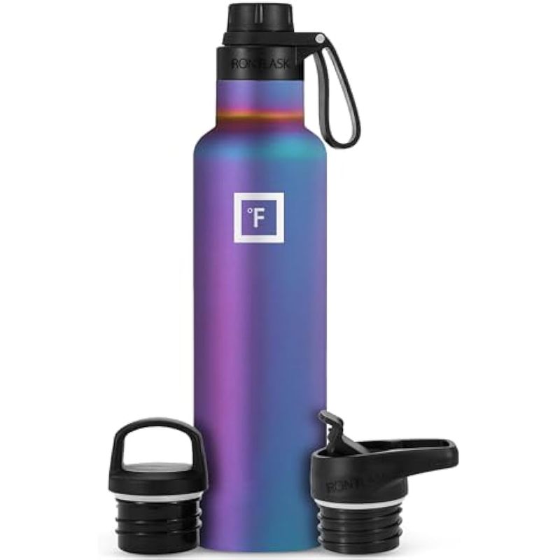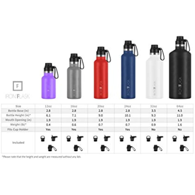 IRON FLASK - Botella de agua deportiva de 12 onzas, 16, 20, 24, 32, y 64 onzas, 3 tapas (tapa de