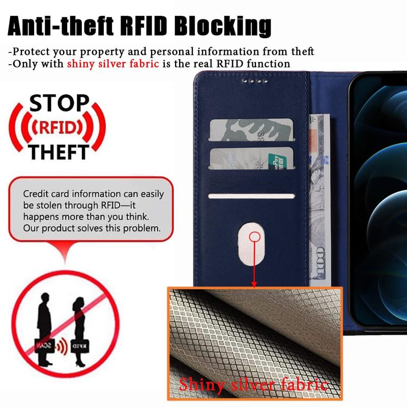 Función antirrobo RFID: esta funda tipo cartera para Samsung Galaxy S23 está equipada con material de tecnología de blindaje RFID diseñado para proteger la información de tu tarjeta del robo de identidad con un innovador material de bloqueo, evita que la información de tu tarjeta bancaria y los fondos sean robados cuando tienes tu funda tipo cartera Samsung S23 en la mano o en tu bolsillo