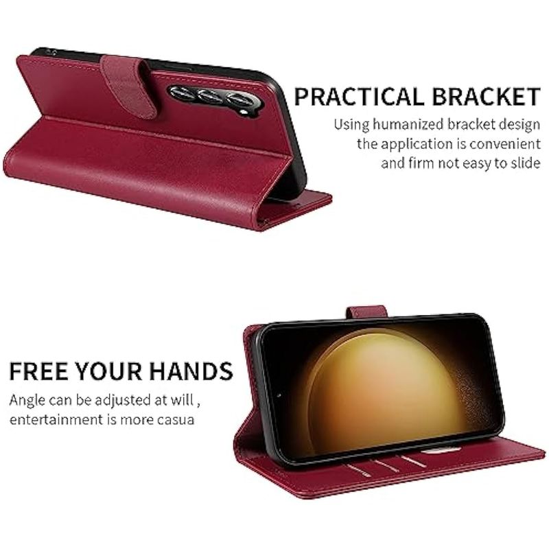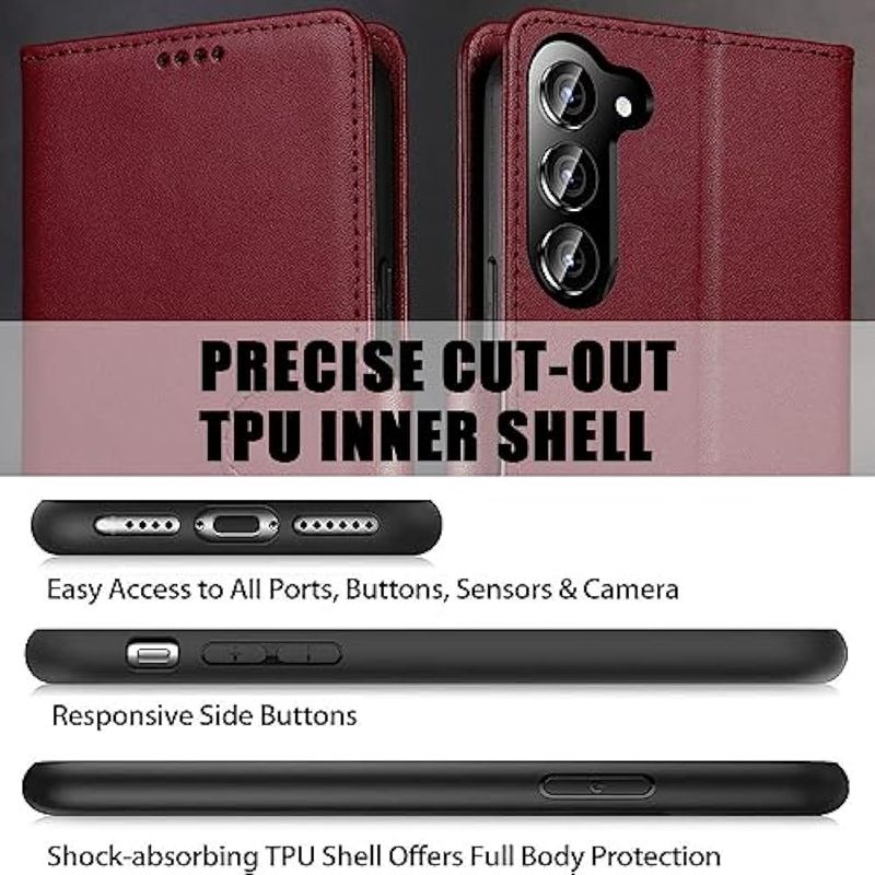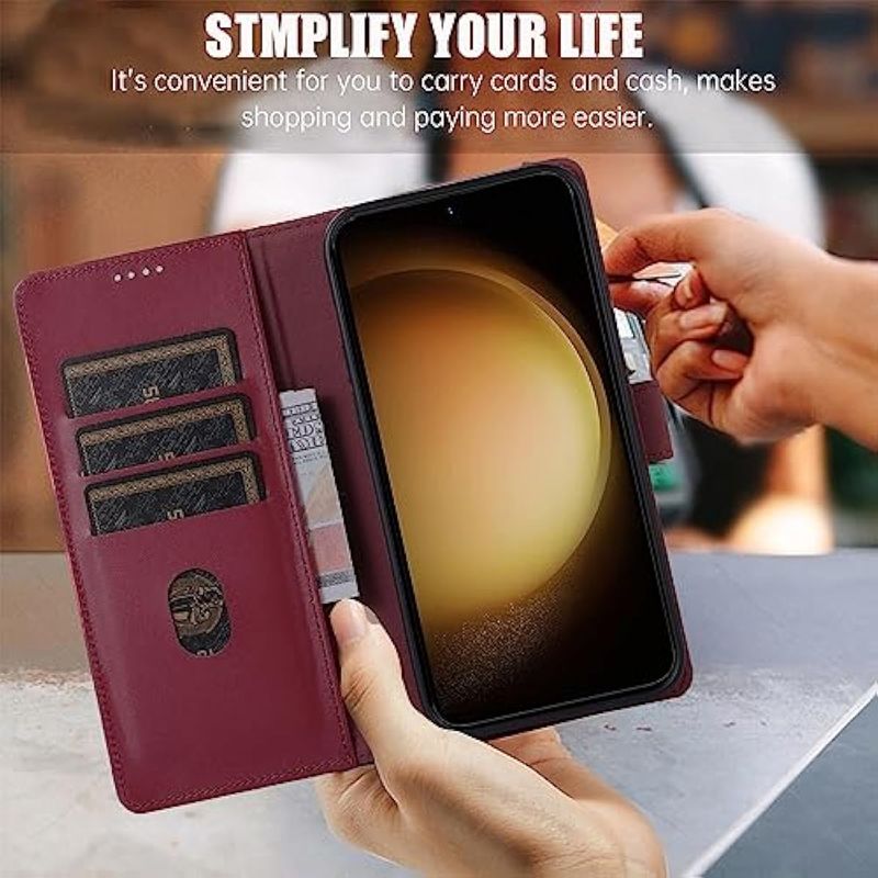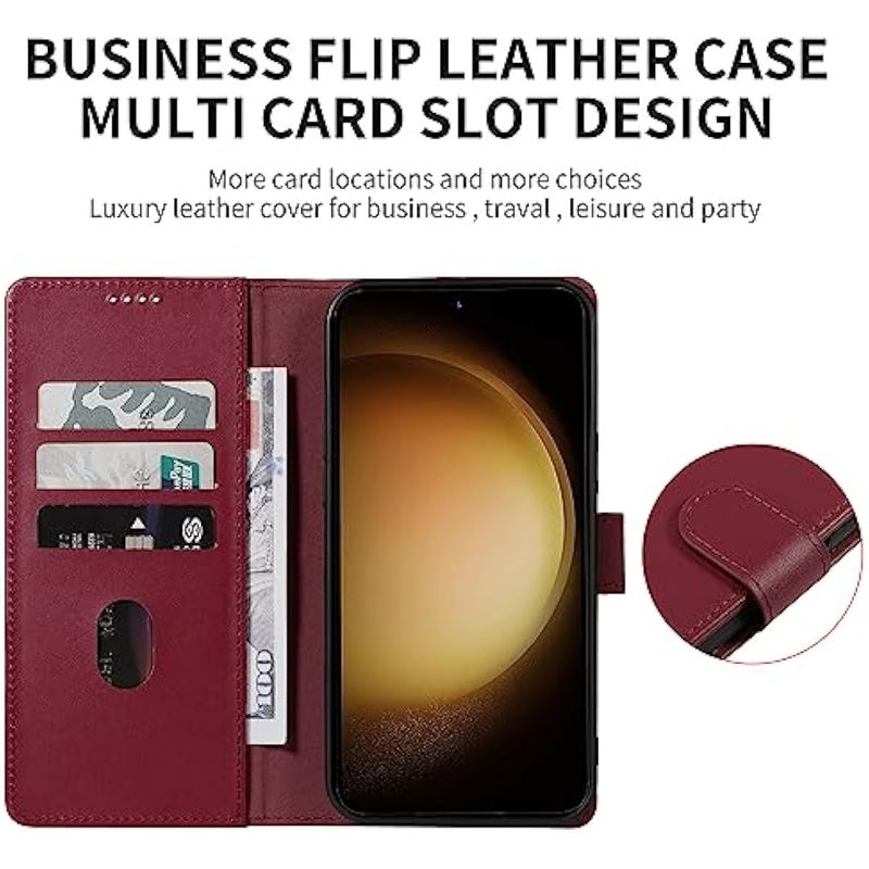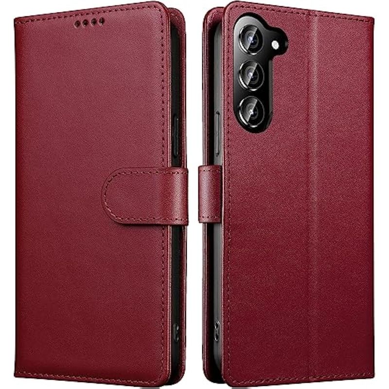TELEFONIAACCESORIOSFUNDAS Y PROTECTORESiWEOCO Funda tipo cartera para Samsung S23 de piel auténtica con soporte antirrobo de bloqueo RFID,
