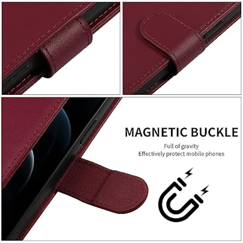 iWEOCO Funda tipo cartera para Samsung S23 de piel auténtica con soporte antirrobo de bloqueo RFID,