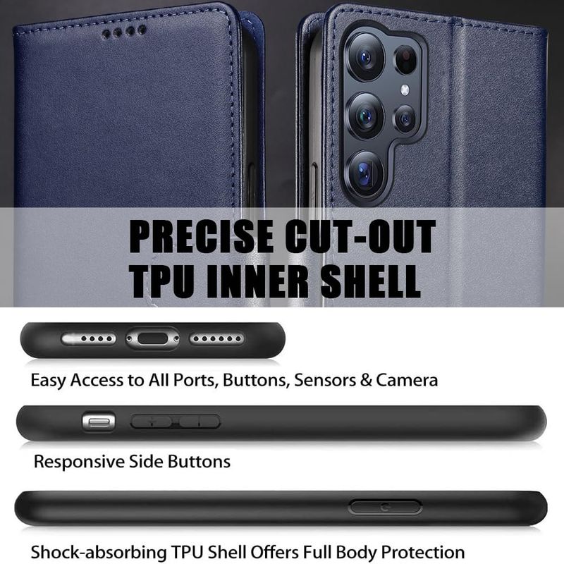 iWEOCO Funda tipo cartera para Samsung S23 de piel auténtica con soporte antirrobo de bloqueo RFID,