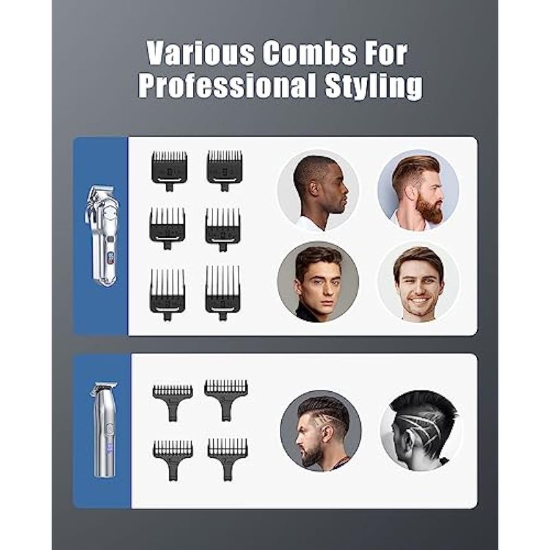 Juego profesional de cortapelos y recortadora: la cortadora de pelo grande se puede utilizar para afeitarse tanto el cabello como la barba, mientras que la pequeña recortadora está equipada con una cuchilla en forma de T para recortar las patillas y los bordes alrededor de las orejas. Puedes obtener fácilmente el corte de pelo que deseas en casa, como en una peluquería