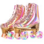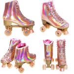 JajaHoho Patines holográficos de piel sintética para mujer, patines holográficos de doble fila,