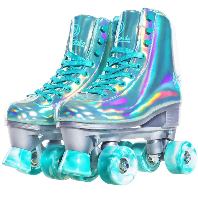 JajaHoho Patines holográficos para mujer, patines brillantes de doble fila, cuatro ruedas, cuatro