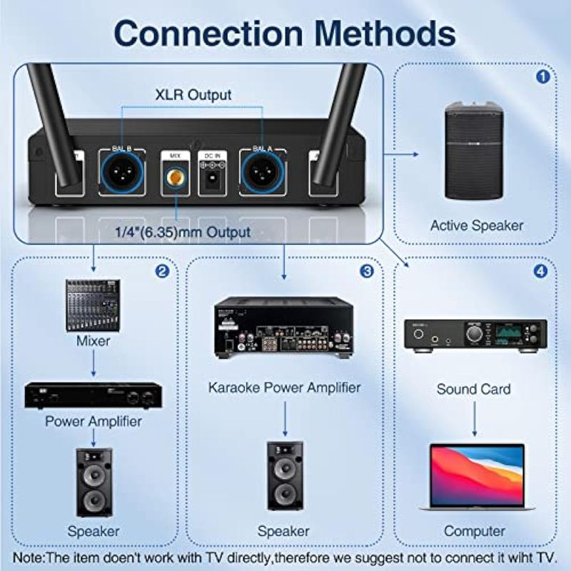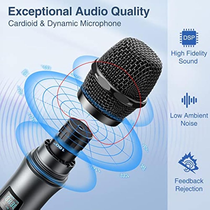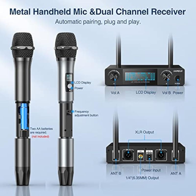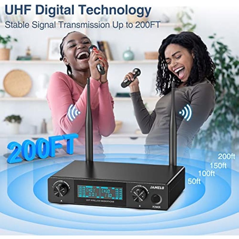 JAMELO Micrófonos inalámbricos de karaoke, sistema de micrófono dinámico UHF, micrófono inalámbrico