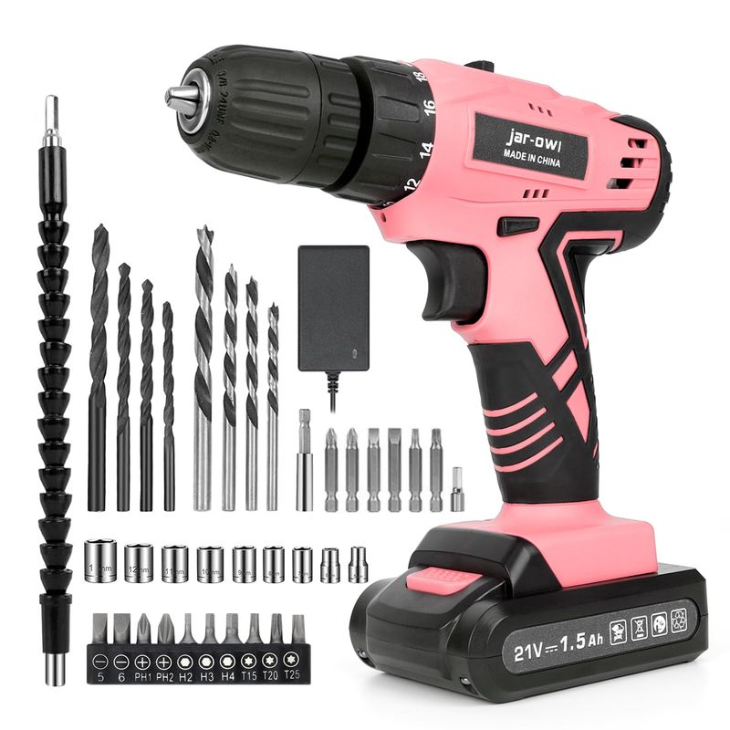 Jar-Owl Taladro inalámbrico de 21 V, par de 350 in-lb, velocidad variable de 0-1350RMP, portabrocas