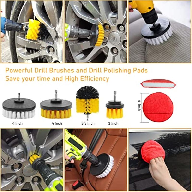 4 cepillos de taladro y 2 almohadillas de cera: los detalles de cepillos de taladro Power Scrubber vienen en 3 tamaños 2 pulgadas3.5 pulgadas4 pulgadas para una limpieza rápida y eficiente de automóviles, motocicletas, caravanas, barcos, etc. Las cerdas de nailon no se rayan y ayudan a eliminar manchas difíciles como polvo de frenos, partículas de hierro, arena y suciedad, lo que hace que la limpieza sea más fácil y divertida que nunca. El aplicador de microfibra ultra suave es lavable y reutilizable, perfecto para aplicar ceras, selladores, esmaltes, aderezos.