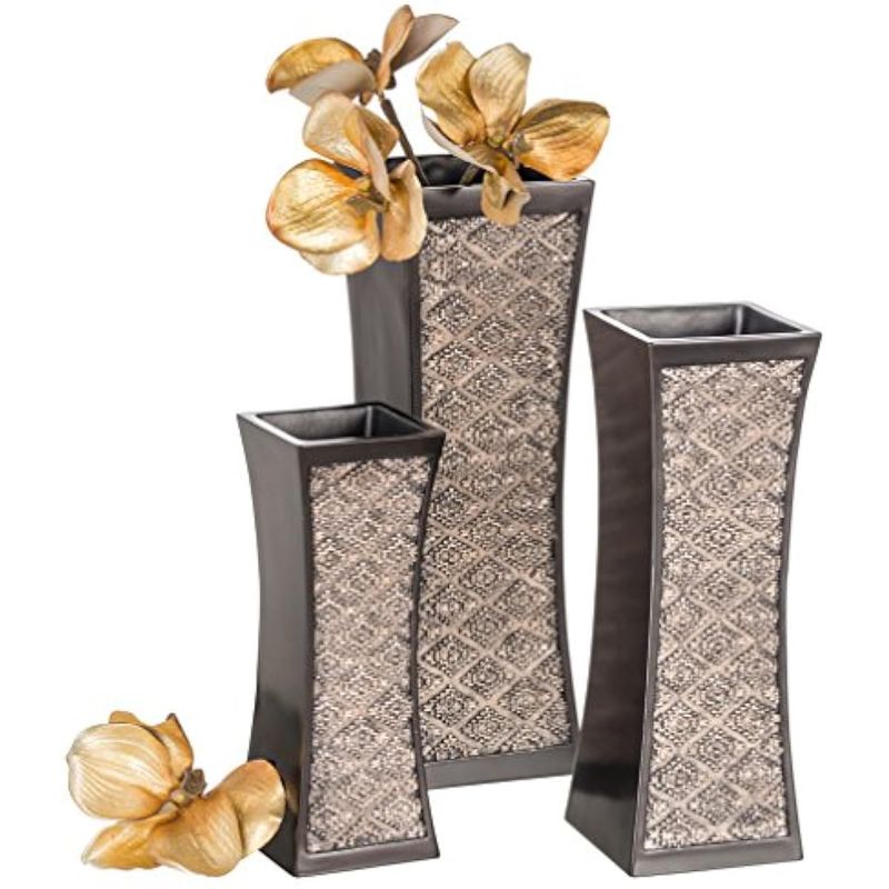 GRAN VALOR: El juego de 3 incluye un jarrón decorado grande 4 x 12 "H, mediano 3.5 x 10 "H y pequeño 3 X 8 "H decorado a un precio que te encantará.