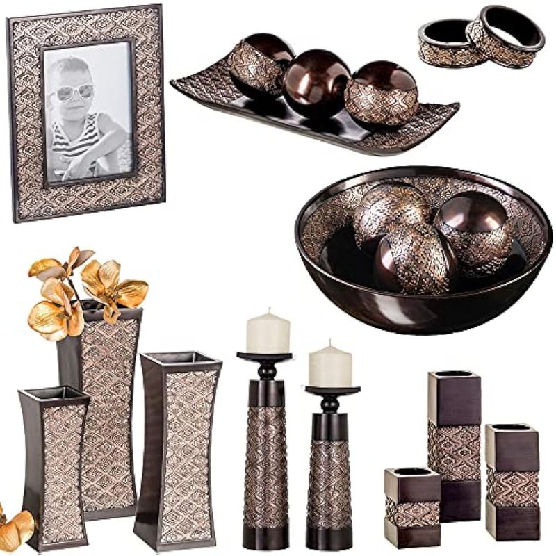 Diseñado para impresionar: el tono marrón intenso y los patrones texturizados crean un juego de jarrones decorativos destacados.