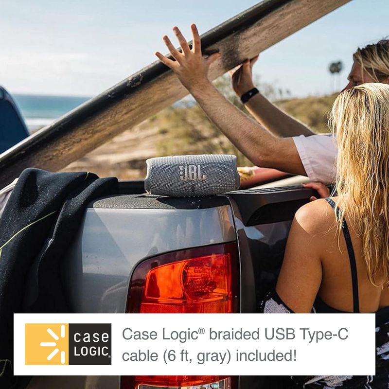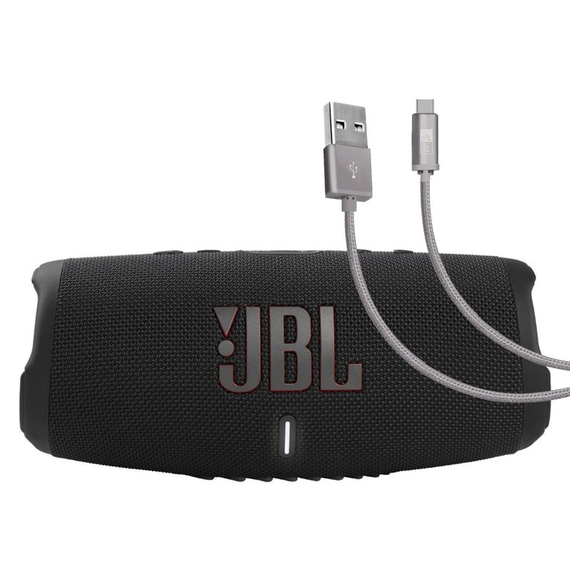 JBL Charge 5 (negro) + paquete con Case Logic trenzado USB tipo C Carga y sincronización (6 pies,