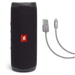 JBL Flip 5 (negro) + paquete con Case Logic trenzado USB tipo C Carga y sincronización (6 pies,