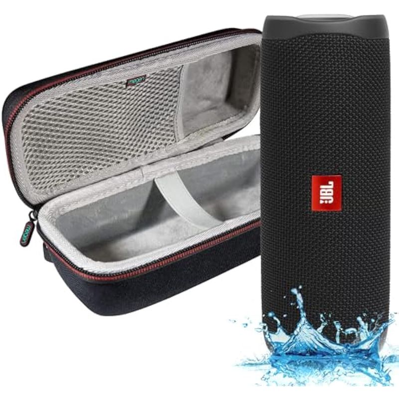JBL FLIP 5, altavoz Bluetooth portátil impermeable, negro, con una funda de protección rígida Megen
