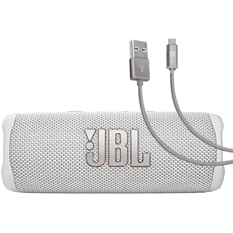 JBL Flip 6 (blanco) + paquete con Case Logic trenzado USB tipo C Carga y sincronización (6 pies,