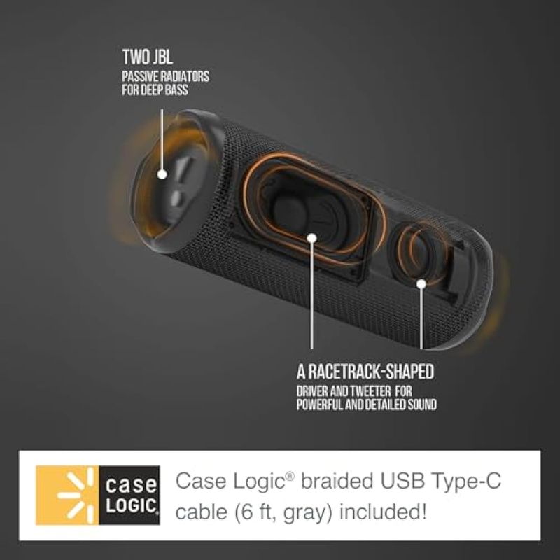 AUDIOPARLANTESJBL Flip 6 (blanco) + paquete con Case Logic trenzado USB tipo C Carga y sincronización (6 pies,