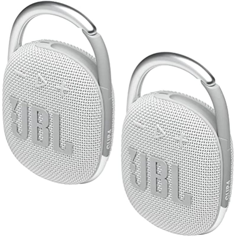 JBL Paquete de 2 altavoces Bluetooth de audio inalámbrico impermeables con clip 4 (blanco)