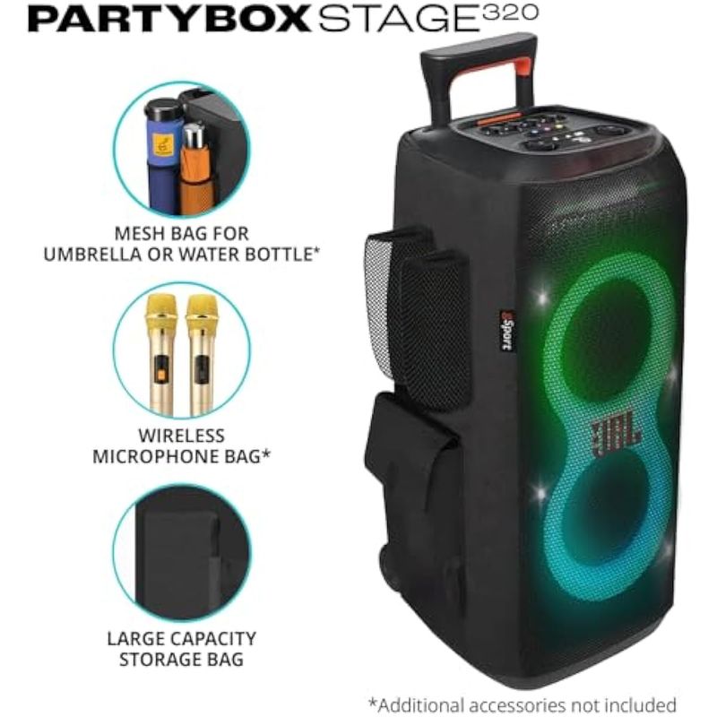 JBL PARTYBOX Stage 320 Paquete de altavoces portátiles para fiestas con funda de carga gSport