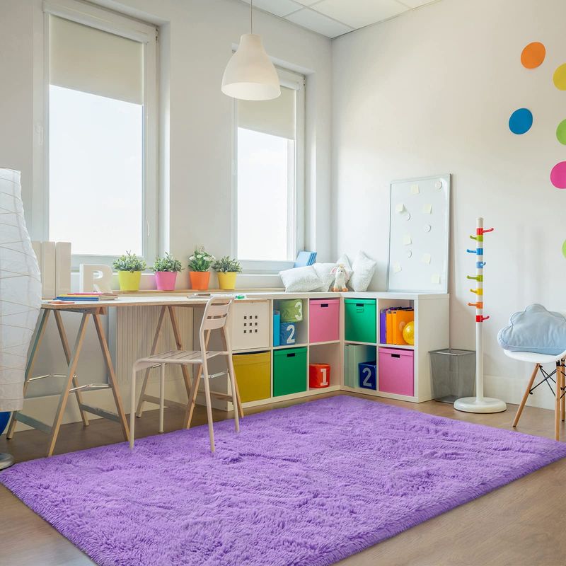 Jelymark - Alfombra de interior peluda, mullida y supersuave para dormitorio, de 4 x 5.9 pies, para