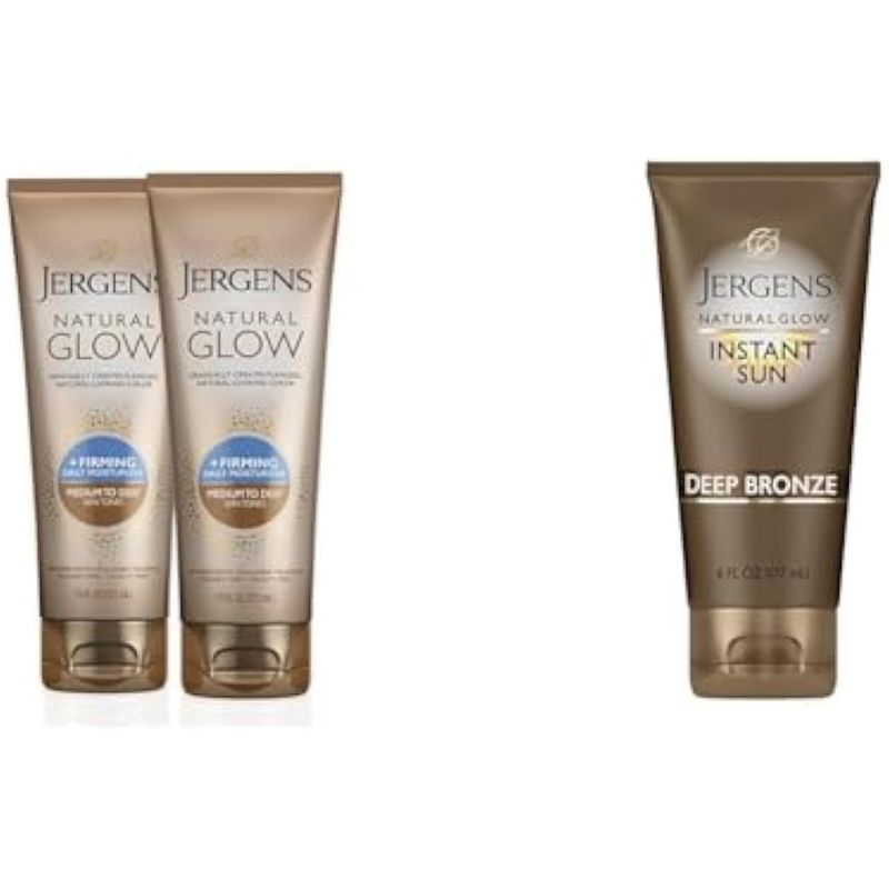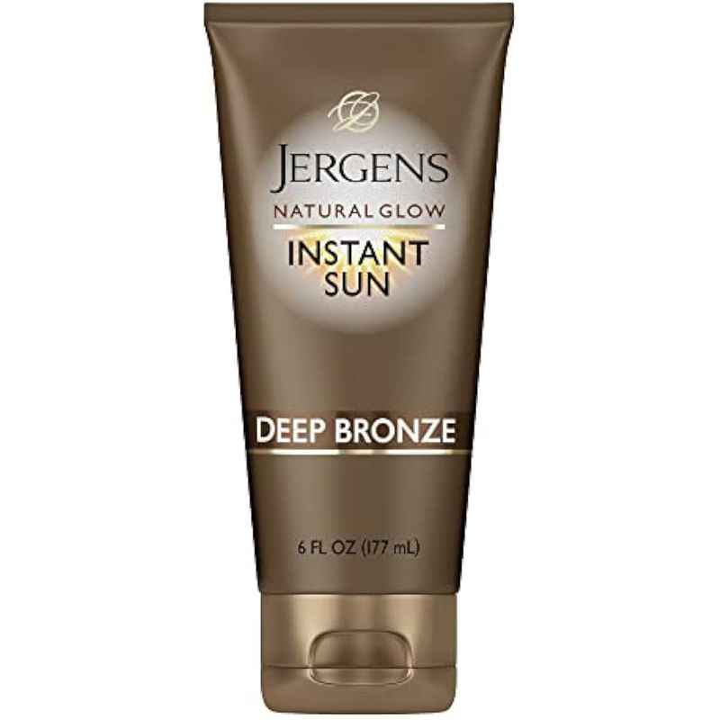 Jergens Natural Glow Instant Sun Crema hidratante bronceadora sin sol + bronceador, autobronceador, bronce profundo, para bronceado de aspecto natural, 6 onzas