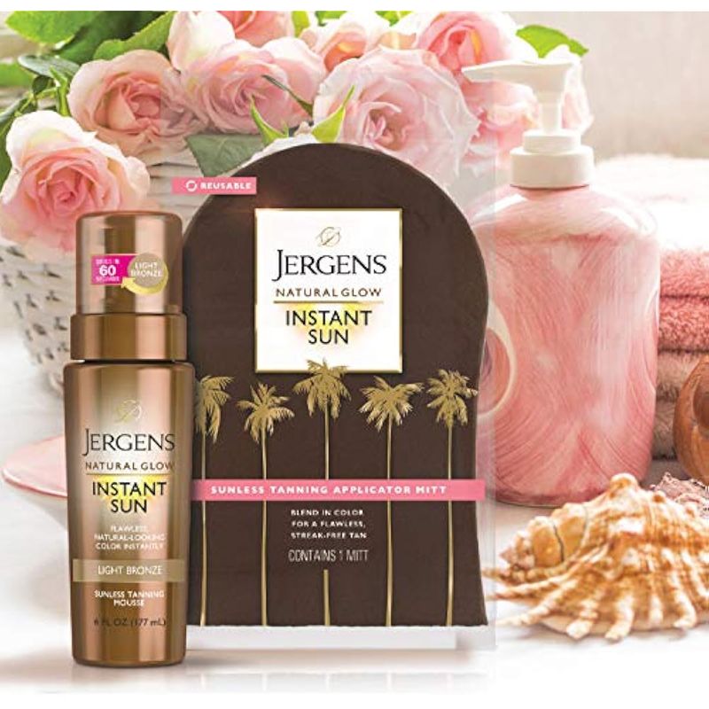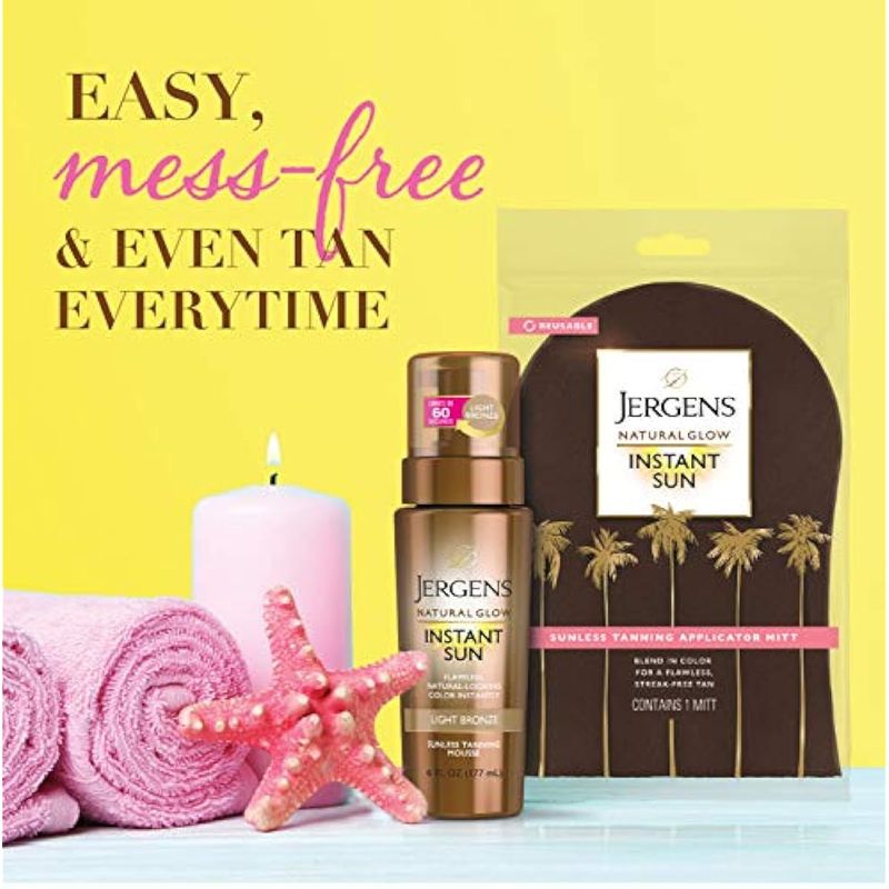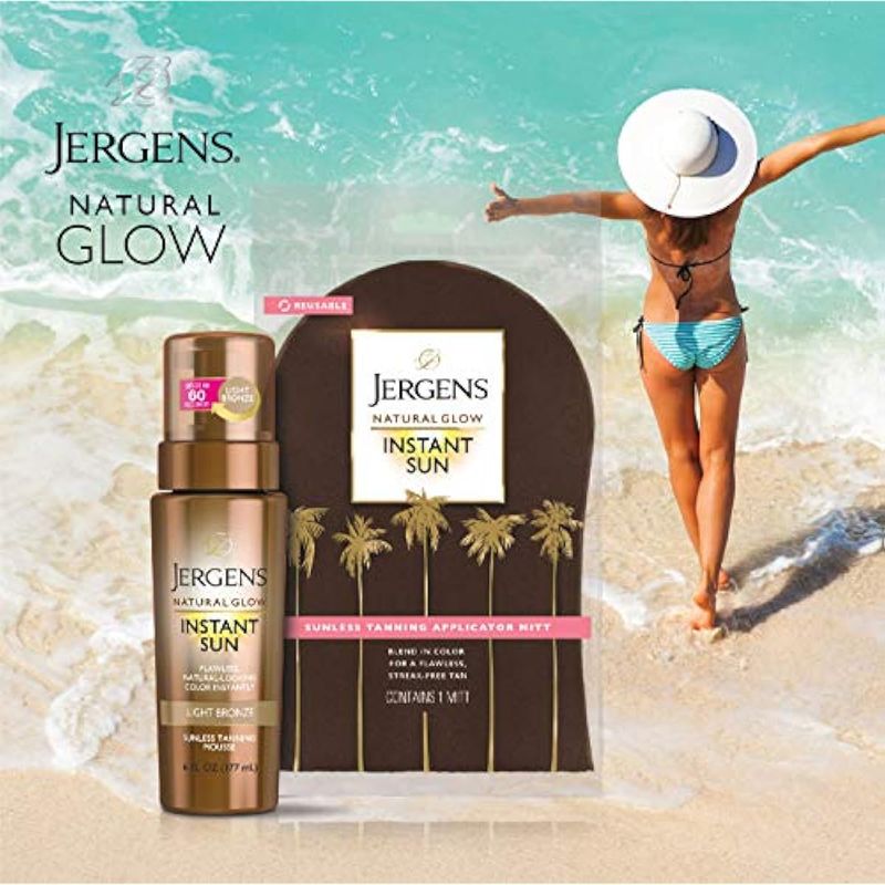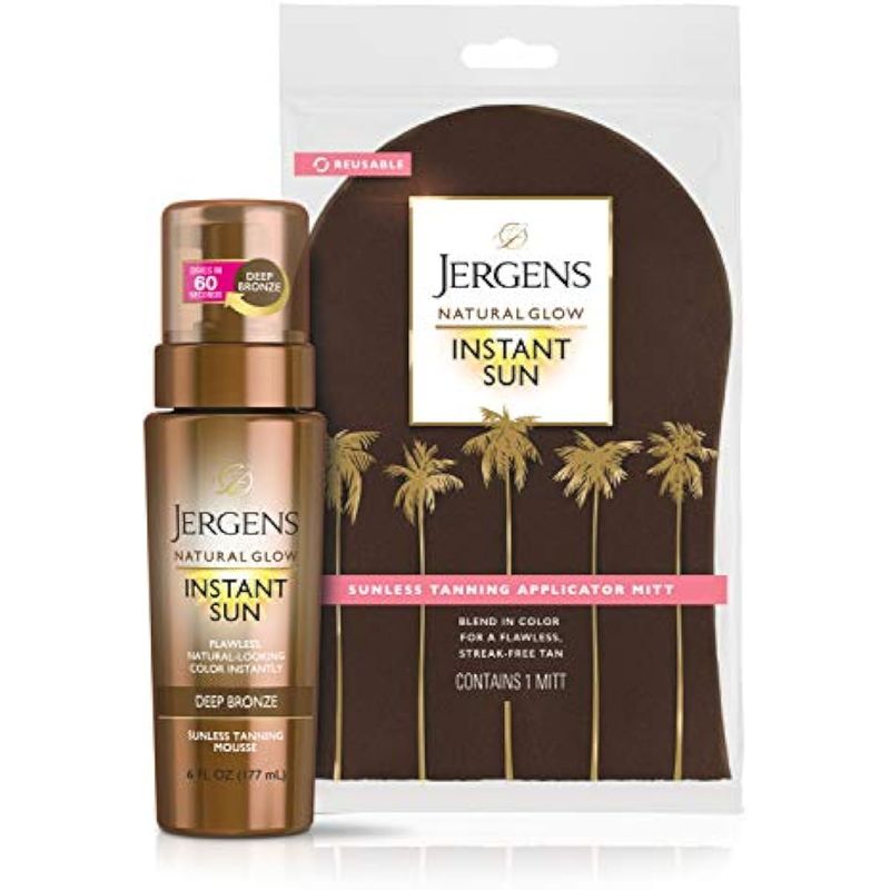 Jergens Natural Glow Instant Sun Body Mousse, bronceado de bronce profundo, autobronceador sin sol