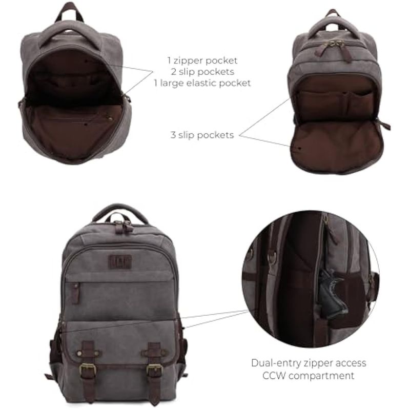 Cuero de lona duradero: nuestra mochila está hecha de lona de la más alta calidad. Comprometida con lona para darte una opción de protección oculta asequible, esta mochila es duradera y duradera. Resiste el uso diario y tiene un exterior fácil de limpiar, simplemente límpialo con un trapo y agua tibia.