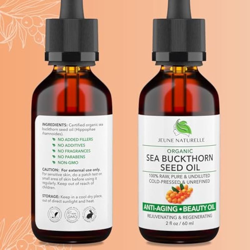 JEUNE NATURELLE ACEITE DE ESPINO CERVAL DE MAR ORGáNICO, DE FRUTAS Y SEMILLAS, 100% PURO CRUDO VIRGEN PRENSADO EN FRíO SIN DILUIR SIN REFINAR, ABSORCIóN RáPIDA, TAMAñO DE VIAJE, NO COMEDOGéNICO