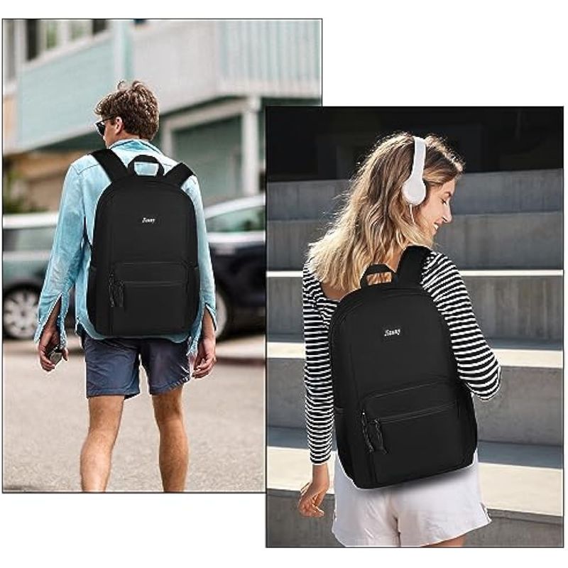 JIAUNY MOCHILA ESCOLAR, LIGERA, MOCHILA CLáSICA PARA LAPTOP CON PUERTO DE CARGA USB PARA ESCUELA SECUNDARIA, ADOLESCENTES, ESTUDIANTES UNIVERSITARIOS, TRABAJO, OFICINA, ADULTOS, COLOR NEGRO