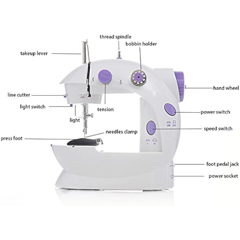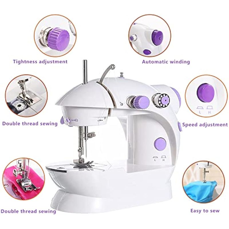 Ajuste de dos velocidades: la mini máquina de coser se puede ajustar a velocidades rápidas y lentas, por lo que los principiantes pueden usar la velocidad lenta y cambiar a la velocidad rápida cuando se vuelven competentes