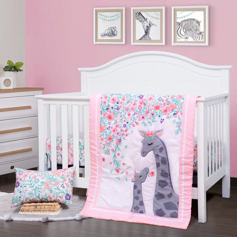 JISEN JUEGO DE ROPA DE CAMA DE 3 PIEZAS PARA CUNA, SUAVE JUEGO DE ROPA DE CAMA PARA CUNA DE BEBé, JUEGO DE EDREDóN CON VOLANTES, EDREDóN PARA CUNA, FUNDA DE ALMOHADA, JUEGOS DE ROPA DE CAMA PARA BEBéS, NIñOS O NIñAS, COLOR ROSA