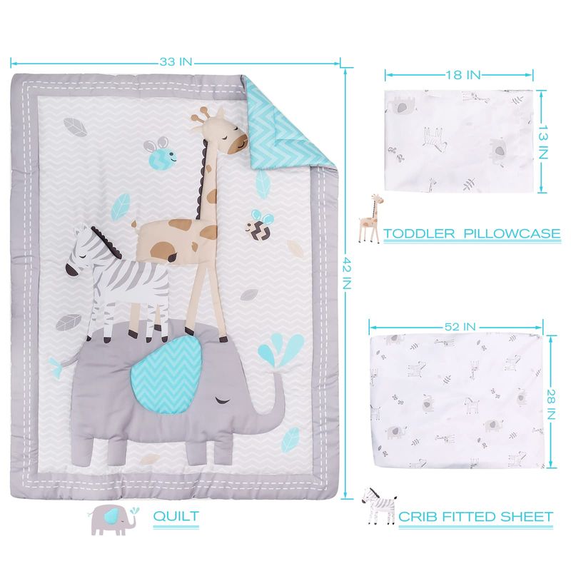 JISEN Juego de ropa de cama de 3 piezas para cuna, suave juego de ropa de cama para cuna de bebé,