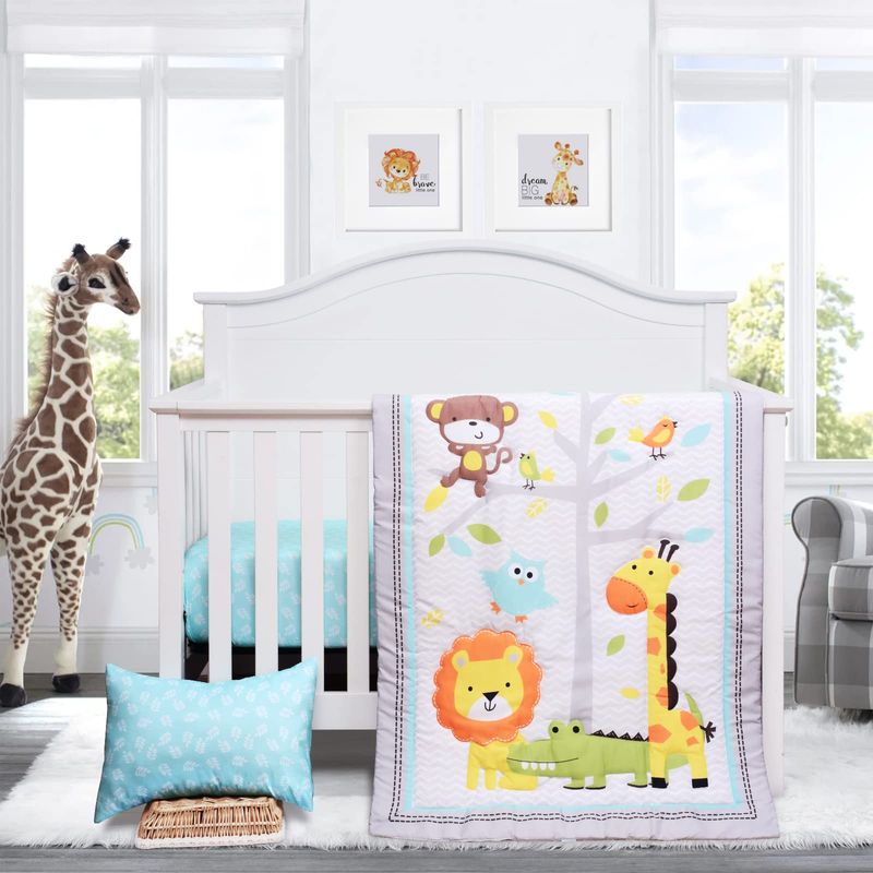 JISEN Juego de ropa de cama de 3 piezas para cuna, suave juego de ropa de cama para cuna de bebé,