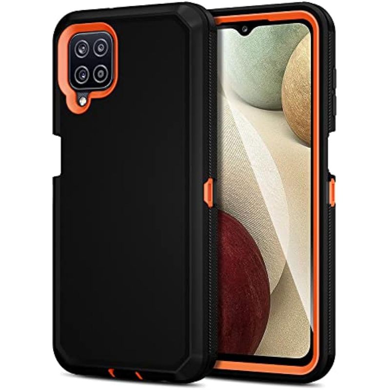 JIUNAI FUNDA SAMSUNG GALAXY A12, DOBLE CAPA DE PROTECCIóN CONTRA CAíDAS A PRUEBA DE GOLPES, DEPORTES AL AIRE LIBRE, RESISTENTE, HíBRIDA, CUBIERTA DE GOMA RESISTENTE, FUNDA DE GOMA PARA SAMSUNG GALAXY A12 5G 2021 NEGRO NARANJA
