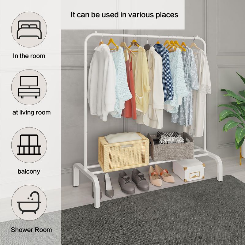 HOGARAMOBLAMIENTOMUEBLES DE DORMITORIOJIUYOTREE Perchero de metal para ropa, 43.3 pulgadas con estante inferior para colgar ropa, abrigos,