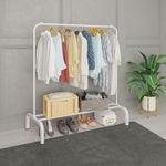 JIUYOTREE Perchero de metal para ropa, 43.3 pulgadas con estante inferior para colgar ropa, abrigos,