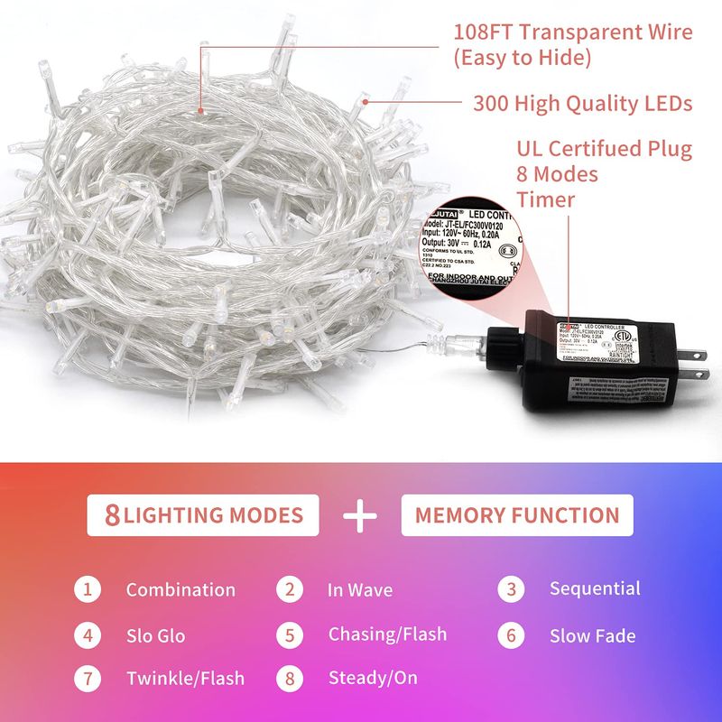 JMEXSUSS Guirnalda de 600 luces LED que cambian de color enchufable, luces de Navidad blancas