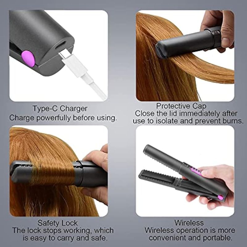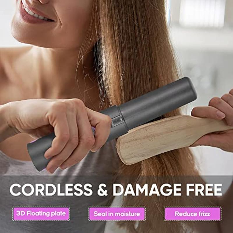 No más cables enredados: no hay cables y realmente puedes trabajar libremente y sin obstáculos. Este alisador de cabello inalámbrico es perfecto para llevar o para viajar, en la oficina, en citas o mientras compras. Cabe fácilmente en tu bolso o bolsa de gimnasio. Tamaño de viaje: 7.87 x 1.37 pulgadas, pesa solo 0.57 libras, bueno para una fijación rápida. Si el cabello es grueso y denso, se requiere una pequeña cantidad y múltiples operaciones. Es más adecuado para cabello fino, corto y liso. No se recomienda para cabello grueso y largo.