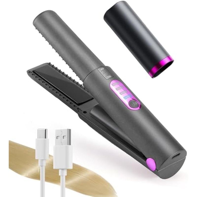 JMFONE PLANCHA DE PELO INALáMBRICA PORTáTIL, PLANCHA PLANA DE VIAJE PARA EL CABELLO, MINI PLANCHA PLANA DE CERáMICA RECARGABLE USB-C CON BATERíA DE 5000 MA, CALOR RáPIDO Y 3 TEMPERATURAS AJUSTABLES