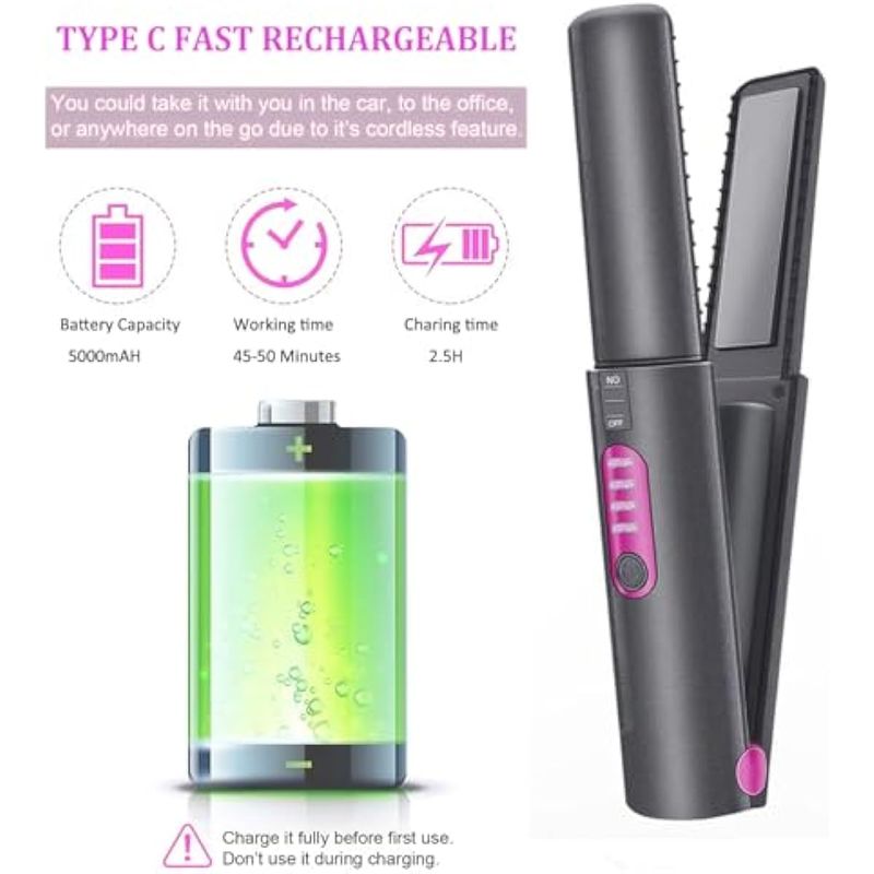 Recargable rápido USB C, un uso de carga durante 30 minutos: este alisador con una batería recargable de 5000 mAh durará aproximadamente 30-40 minutos de tiempo de uso cuando está completamente cargado. Nota: no se puede utilizar durante la carga. Por favor, cárgalo completamente antes de usarlo. Adecuado para viajes, citas de emergencia, viajes de negocios, fiestas, etc. Es perfecto como regalo del Día de la Madre, regalo de Navidad y regalo de cumpleaños para mujeres.