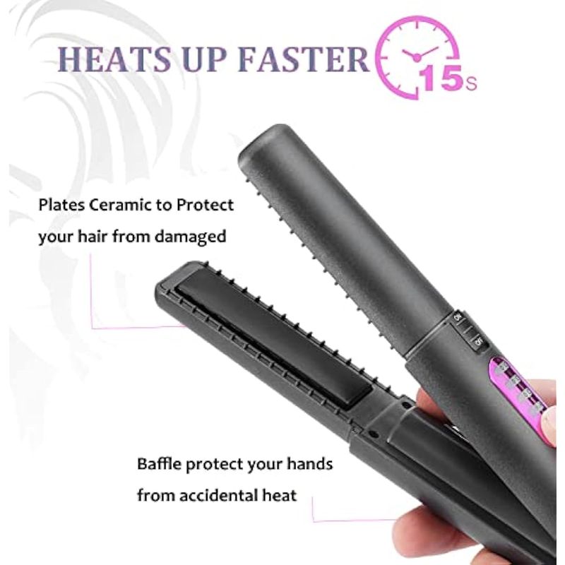 ?Calentamiento y alisado rápido mejorado?El mini alisador de pelo puede calentarse rápidamente y alcanzar los 400 °F en 1 minuto, satisfaciendo tus necesidades de peinado rápido en cualquier ocasión. Las placas térmicas de cerámica de alta calidad se calientan rápida y uniformemente, sin arrugas ni enganches, lo que te ayuda a darle a tu cabello un aspecto perfecto en minutos. También incluye una cubierta para protegerte de las partes calientes. Nunca te preocupes por quemarte.