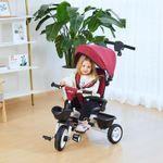 JMMD - Triciclo para bebé 6 en 1 con mango ajustable de empuje, toldo extraíble, arnés de seguridad,