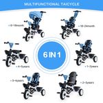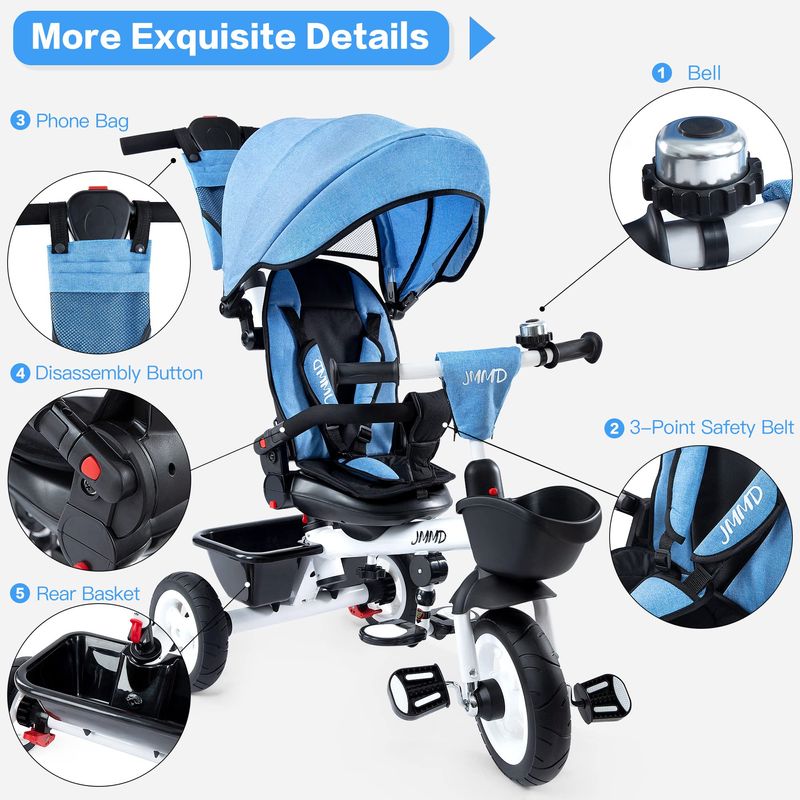 JMMD - Triciclo para bebé 6 en 1 con mango ajustable de empuje, toldo extraíble, arnés de seguridad,