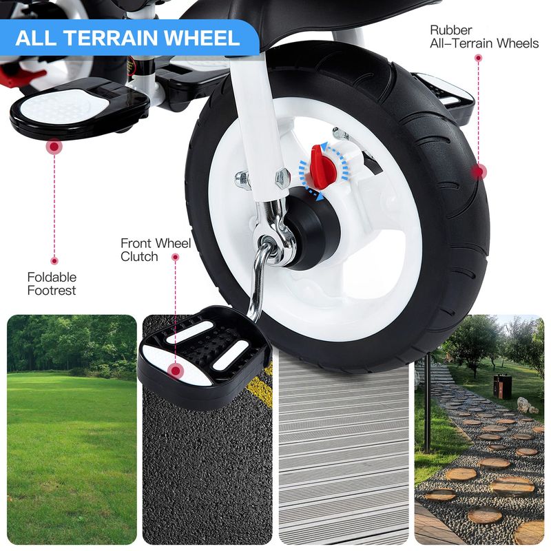 RODADOSTRICICLOSJMMD - Triciclo para bebé 6 en 1 con mango ajustable de empuje, toldo extraíble, arnés de seguridad,