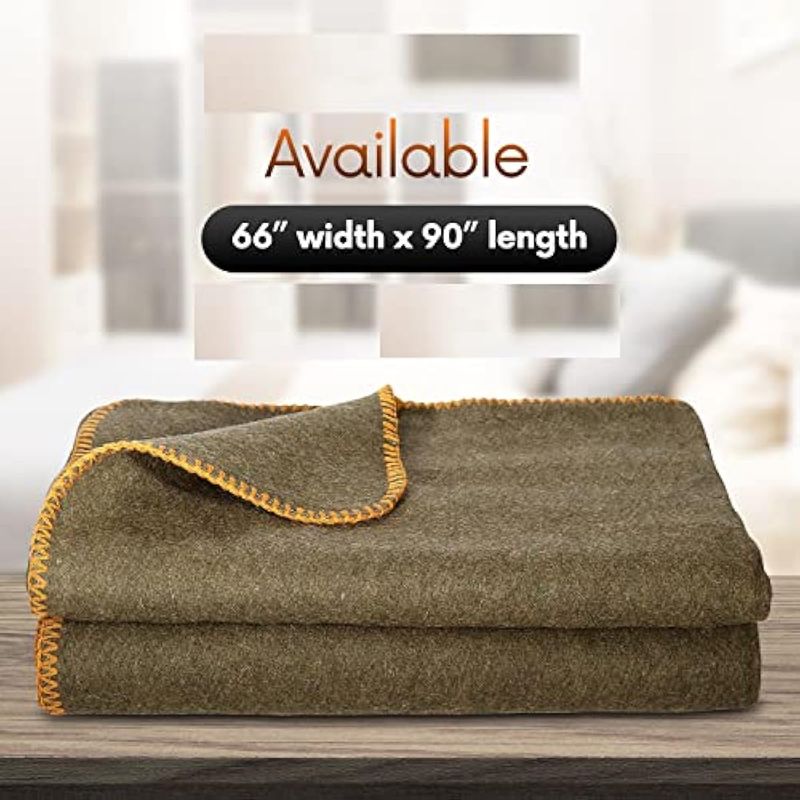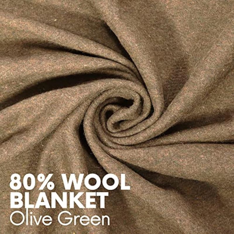 JMR USA INC. MANTA MILITAR DE LANA PARA CAMPAMENTO, EMERGENCIA Y USO DIARIO, MANTA DE LANA IGNíFUGA EXTRA GRUESA Y CáLIDA PARA EXTERIORES, 80% LANA, VERDE OLIVA, TAMAñO 66 X 90 PULGADAS