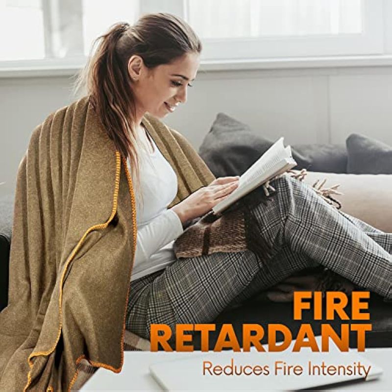 Retardante al fuego: la manta de lana es naturalmente resistente al fuego y tiene la capacidad de detener la propagación del fuego. Es una gran manta de lana para exteriores para mantenerte seguro durante los eventos de emergencias de incendio y supervivencia, perfecta para acampar y uso militar.