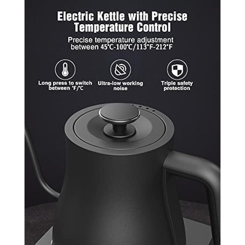 Jocuu Hervidor eléctrico de cuello de cisne con control de temperatura, tetera para té y café, acero