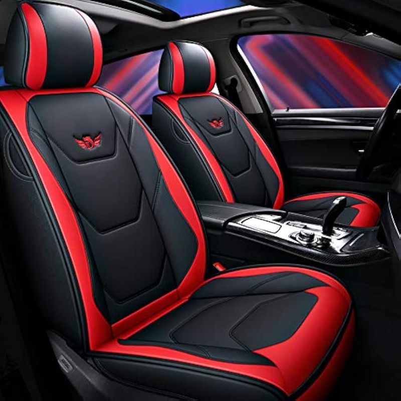 JOJOHON. FUNDAS DE ASIENTO DE AUTOMóVIL, DE PIEL SINTéTICA DE LUJO, 5 ASIENTOS, AJUSTE UNIVERSAL., ROJO (SPORTS RED)